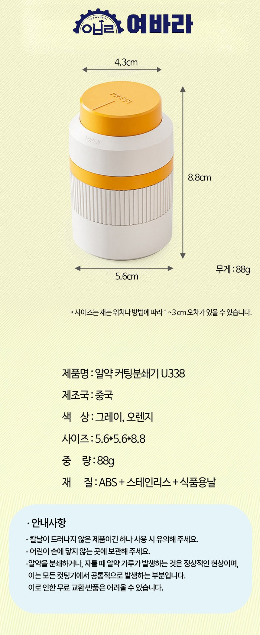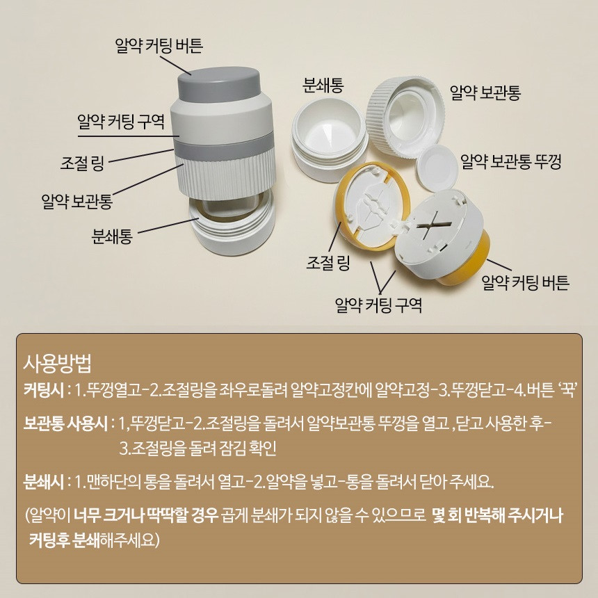 알약커팅기 분말 분쇄기 절단기 여바라 알약가위 커터기 보관함